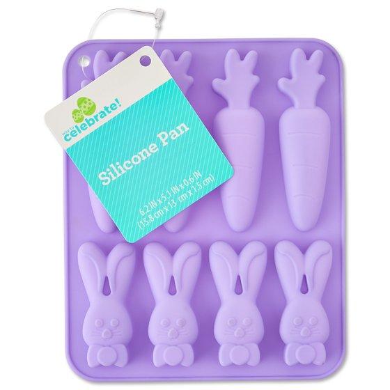 - Way To Celebrate Easter 8-Cavity Bunny and Carrot Shapes Silicone Cake Mold, Purple