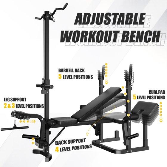 900LBS Olympic Weight Bench,9 in 1 Multifunction Strength Training Bench with Leg Extension, Preacher Curl Pad and LAT Pulldown for Home Gym with 120lb Weight Plates,Black