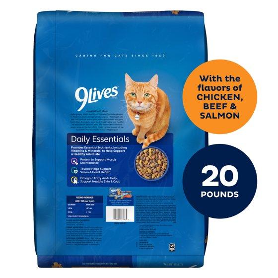 9Lives Daily Essentials Dry Cat Food for Adult Cats with Chicken, Beef & Salmon, 20 lb. Bag