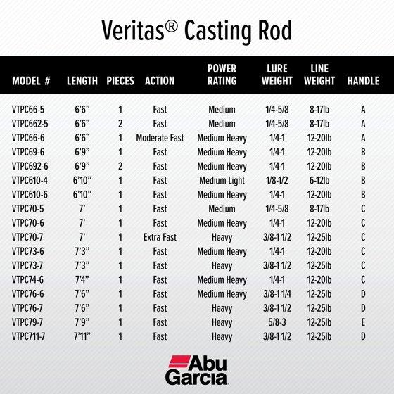 - 12-25LB LINE RATING, HEAVY POWER, EXTRA FAST ACTION: The Veritas Casting Fishing Rod is up for the next challenge. Lure rating of 3/8-1 1/2 oz.