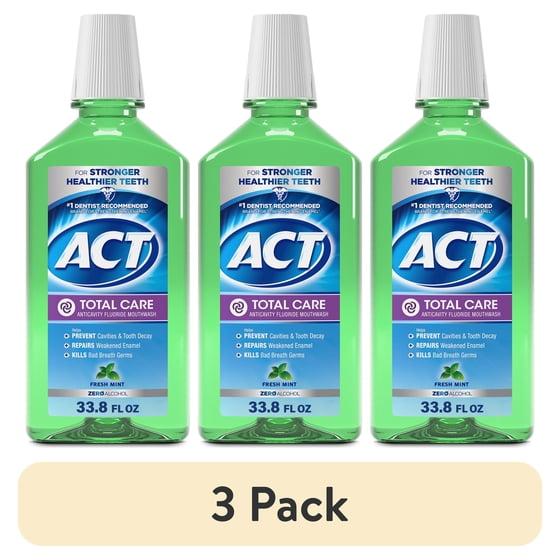 - Contains: One (1) 33.8-fluid-ounce bottle of ACT Total Care Anticavity Fluoride Mouthwash, Fresh Mint
