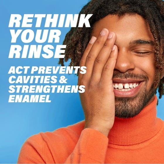 - Freshens Breath: ACT swishes away particles brushing may miss and freshens breath with fresh mint flavor