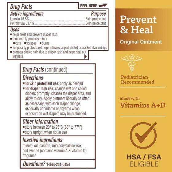 Lanolin 15.5% (Diaper Rash Ointment), Petrolatum 53.4% (Skin Protectant), Cod Liver Oil (Contains Vitamin A & Vitamin D), Fragrance, Light Mineral Oil, Microcrystalline, Wax, Paraffin