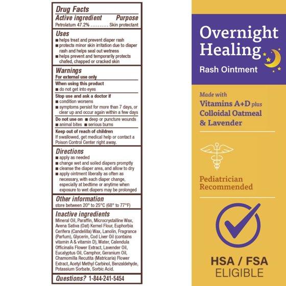 - A+D Overnight Healing Diaper Rash Ointment for Infant and Baby - Soothes, Protects & Relieves Diaper Rash Overnight with Lavender & Colloidal Oatmeal - Healing Ointment for Red, Itchy, Irritated Skin - 3.6oz