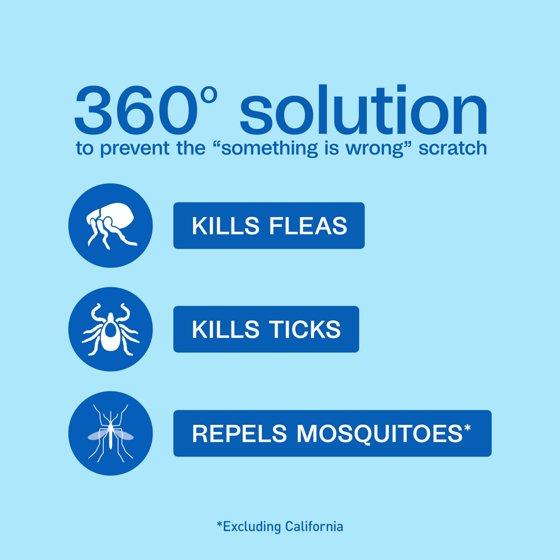 - EFFECTIVE FLEA & TICK TREATMENT: Kills fleas and ticks including deer ticks and prevents new flea infestations while repelling mosquitoes for 6 months (Excluding California)