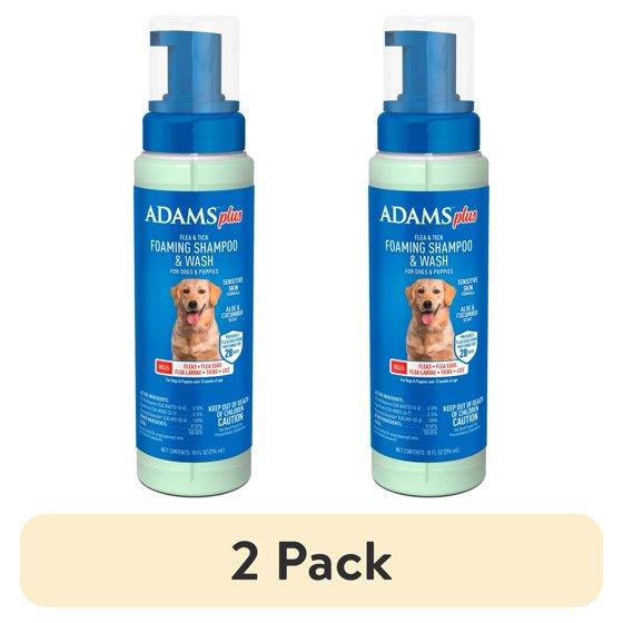 (2 pack) ADAMS Plus Flea & Tick Foaming Shampoo & Wash for Dogs & Puppies, Flea Shampoo to Treat Flea Infestations, Kills Ticks, Fleas, Flea Eggs & Lice, Cleans and Conditions Coat, 10 fl oz