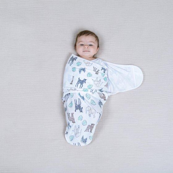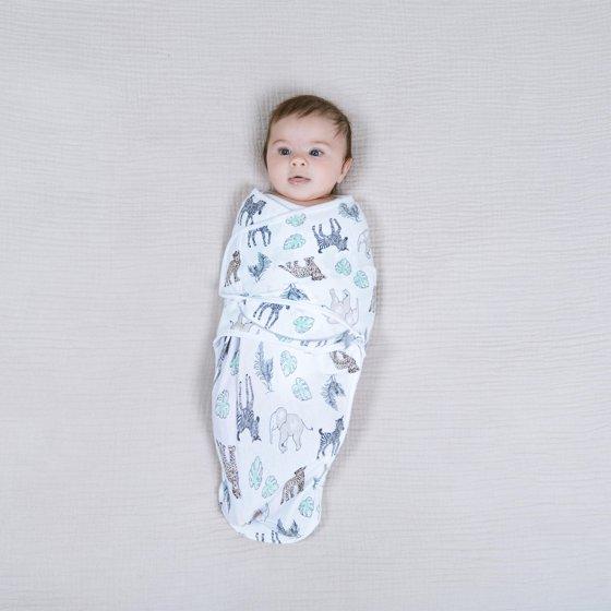 aden + anais Essentials Wrap Swaddles, Cotton, Toile Jungle, Multicolor, Unisex, Newborn, 0-3 M, 2-Pack. Swaddling can help your little sleep more safely + soundly and Easy Swaddle Wrap Quick Change makes it…well, easy! Updated design is extra secure so even baby Houdinis stay swaddled all night. Adjustable fasteners create a snug, secure, womb-like feeling, and help prevent startle reflex. Wrap them two ways; arms-in or arms-out. Zipper bottom for quick changes.