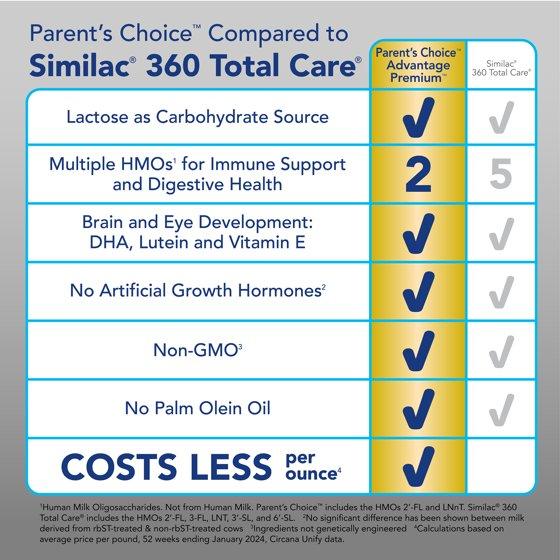 - COMPLETE NUTRITION: Advantage Premium provides complete nutrition for baby's first year. This enhanced formula has multi HMOs versus our single HMO formulation. Compare to the nutrition of Similac 360 Total Care.