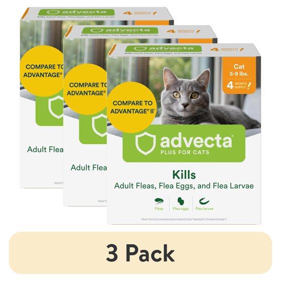 (3 pack) Advecta Plus Topical Flea Treatment for Cats and Kittens, Flea Prevention and Control, Small & Large, Fast-Acting Waterproof Drops, 4-Month Supply