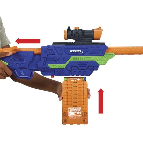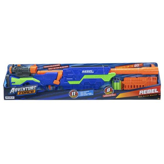 Adventure Force Rebel Foam Dart Blaster Set, Bolt-Action Clip-Fed Design, 1 Blaster with 8 Accu-Blast Darts, Clip and Detachable Scope, Compatible with Most Standard Nerf Blasters, Ages 8+