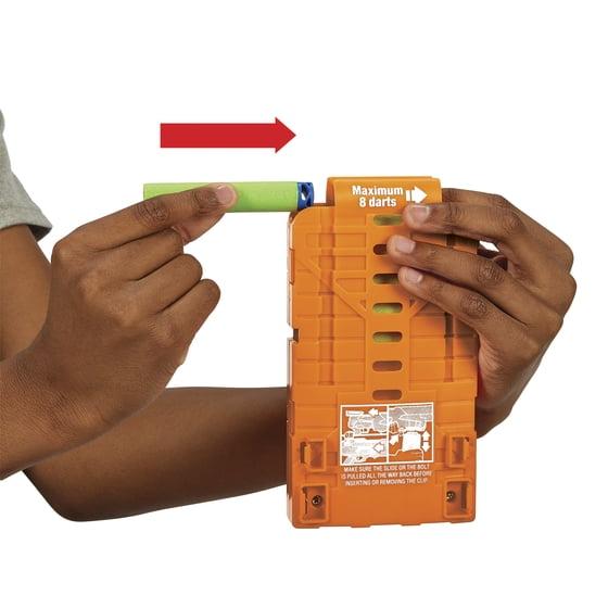 - BOLT-ACTION, CLIP-FED DART BLASTING FIRES DARTS UP TO 80 FEET: Load the clip into the blaster, move the priming bolt backward and forward, and press the trigger to fire a dart
