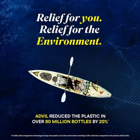 - Advil 200mg ibuprofen pain reliever provides relief with packaging with 20% less plastic by 2022 to keep 500,000 pounds of plastic out of landfills