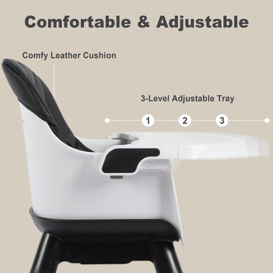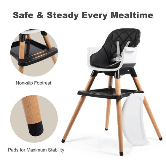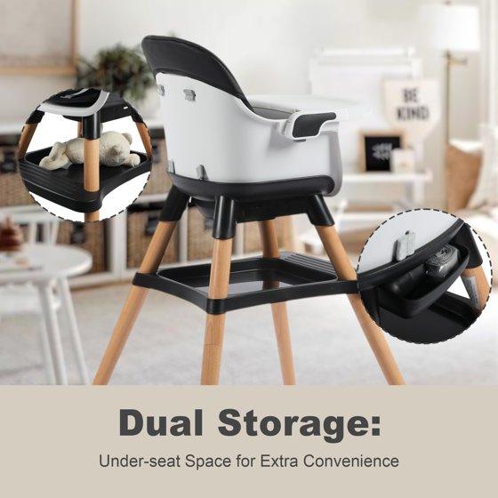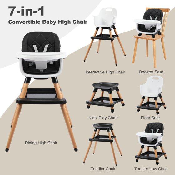 AILEEKISS 7 in 1 Wooden Baby High Chair for Toddler, Infant Feeding Chair with Removable Tray, Black