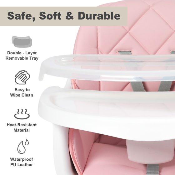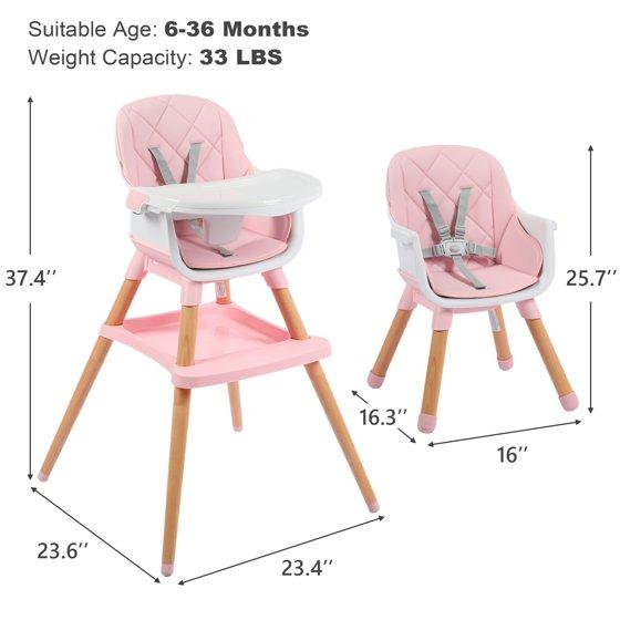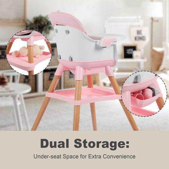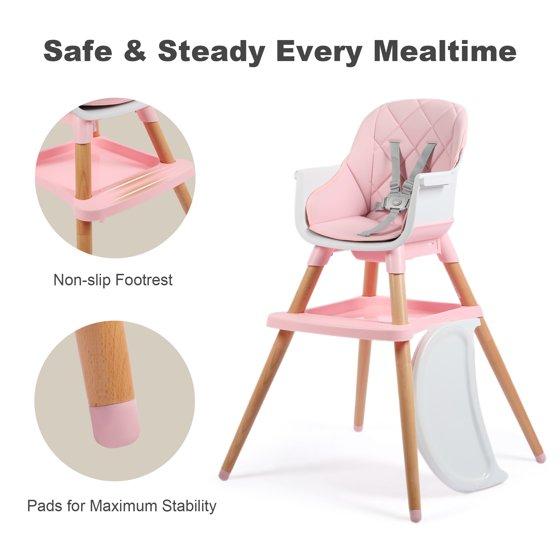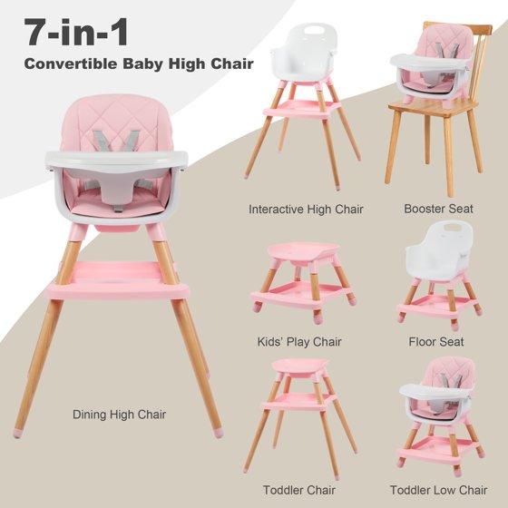 AILEEKISS 7 in 1 Wooden Baby High Chair for Toddler, Infant Feeding Chair with Removable Tray, Pink