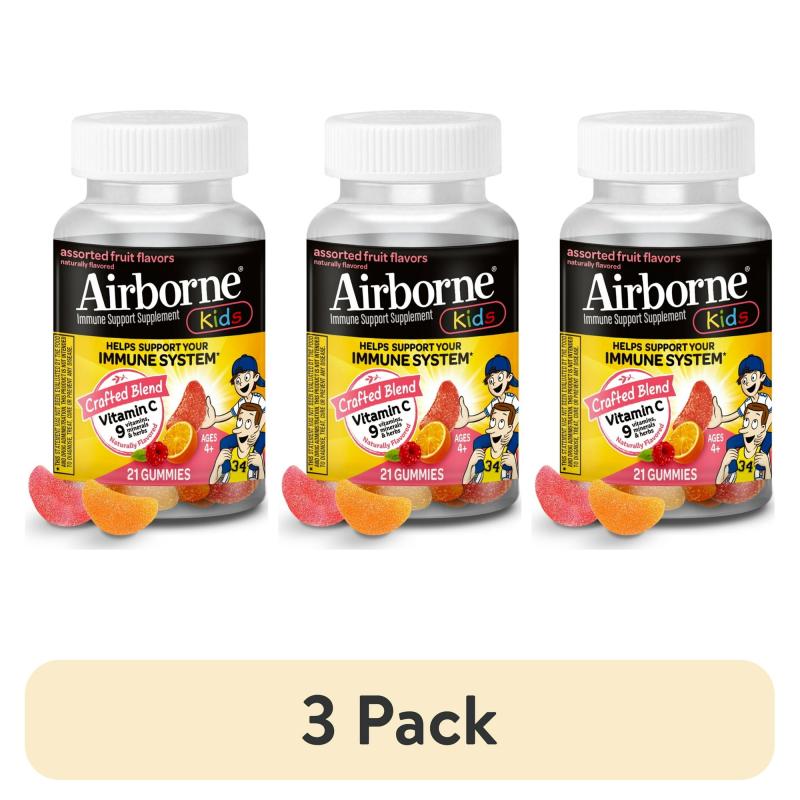 (3 pack) Airborne Kids 500mg Vitamin C Immune Support Gummies, Multivitamin Supplement, Assorted Fruit Flavor, 21 ct