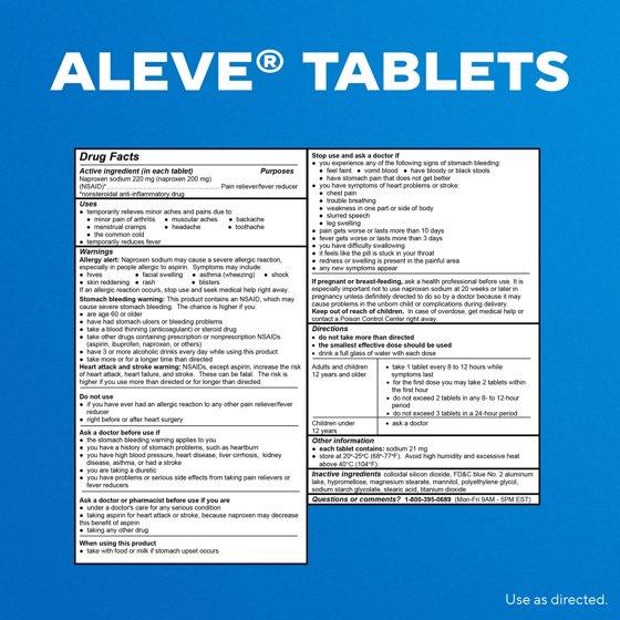 - EASY TO TAKE: Aleve Naproxen Tablets comes in small, round form that makes them easy to swallow