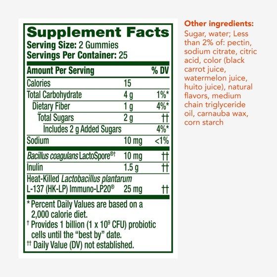 - Prebiotic: Food for your body's good bacteria - every 3-in-1 Biotic gummy is enriched with prebiotics to help nourish your body's natural healthy bacteria and contribute to a balanced gut*