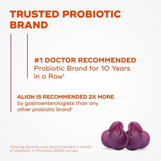 - THE PROBIOTIC BRAND PHYSICIANS RECOMMEND MOST: Align Probiotic is nearly 2x more recommended than any other probiotic brand
