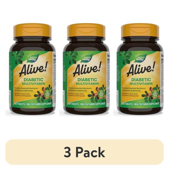 (3 pack) Alive! Diabetic Multivitamin, Nutritional Support for Adults with Diabetes, B-Vitamins, Unisex, 60ct
