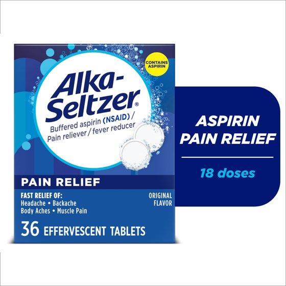 Alka-Seltzer Pain Relief, Aspirin Effervescent Tablets for Fast Pain Relief, Package May Vary 36 Ct