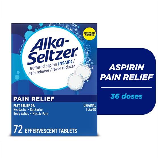 Alka-Seltzer Pain Relief, Aspirin Effervescent Tablets for Fast Pain Relief, Package May Vary 72 Ct