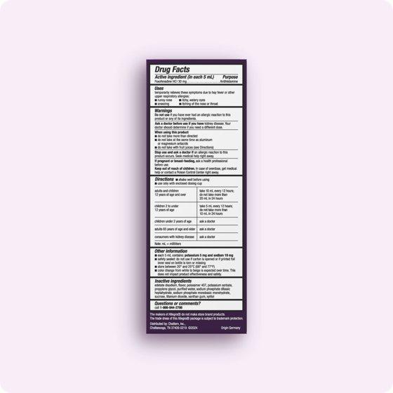 Kid allergies are unpleasant, but taking children's allergy medicine doesn't have to be. Alleviate your child's allergy symptoms with Allegra Children's 12-Hour Allergy Relief Liquid in berry flavor. Children's Allegra is for kids 2 years and older provides 12 full hours of non-drowsy relief from sneezing, runny nose, itchy and watery eyes, and itchy nose or throat. Use Allegra children's allergy medicine for indoor and outdoor allergens like pollen, ragweed, grass, trees, and pet dander. Best of all, this allergy medicine is made with active ingredient fexofenadine, an antihistamine designed to have no impact on kids' concentration, alertness, or learning ability due to drowsiness. Stock up on Allegra Children's 12-Hour Liquid for everyday relief from kids' allergy symptoms.
