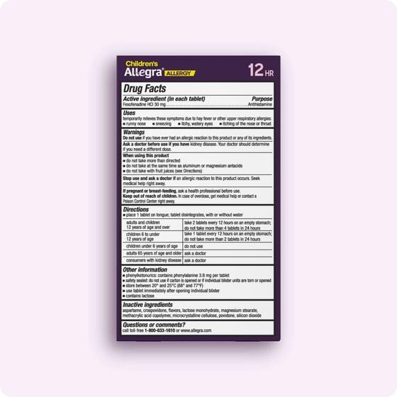 Allegra Children's 12-Hour Allergy Relief Orally Dissolving Tablets, Non-Drowsy Indoor and Outdoor Allergy Medicine, 30 mg Fexofenadine HCI Antihistamine For Kids, Orange Cream Flavor, 24-Count