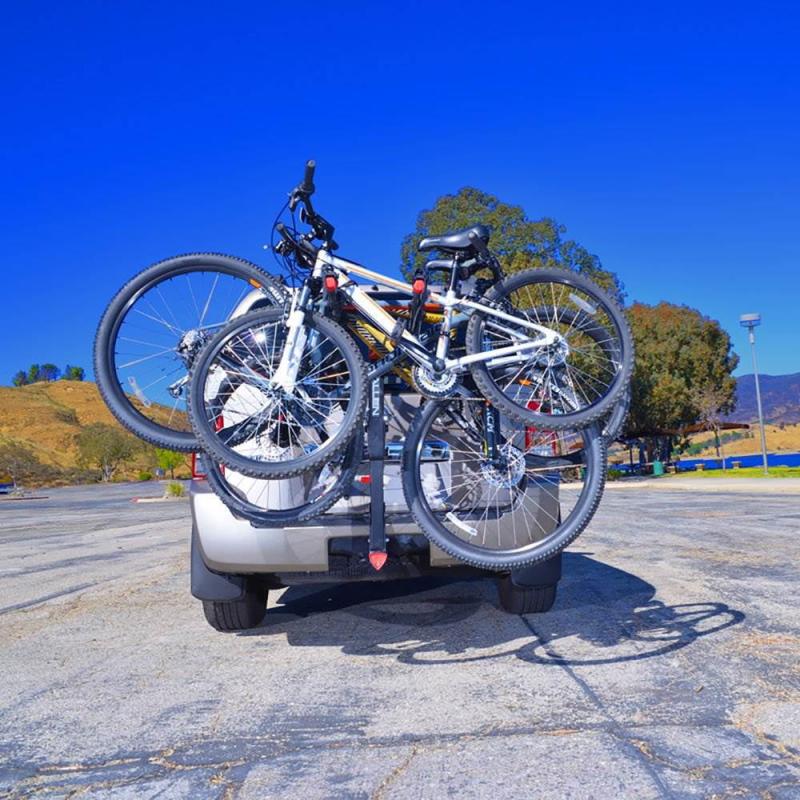 - Patented tie-down cradles and straps individually secure and protect bicycles