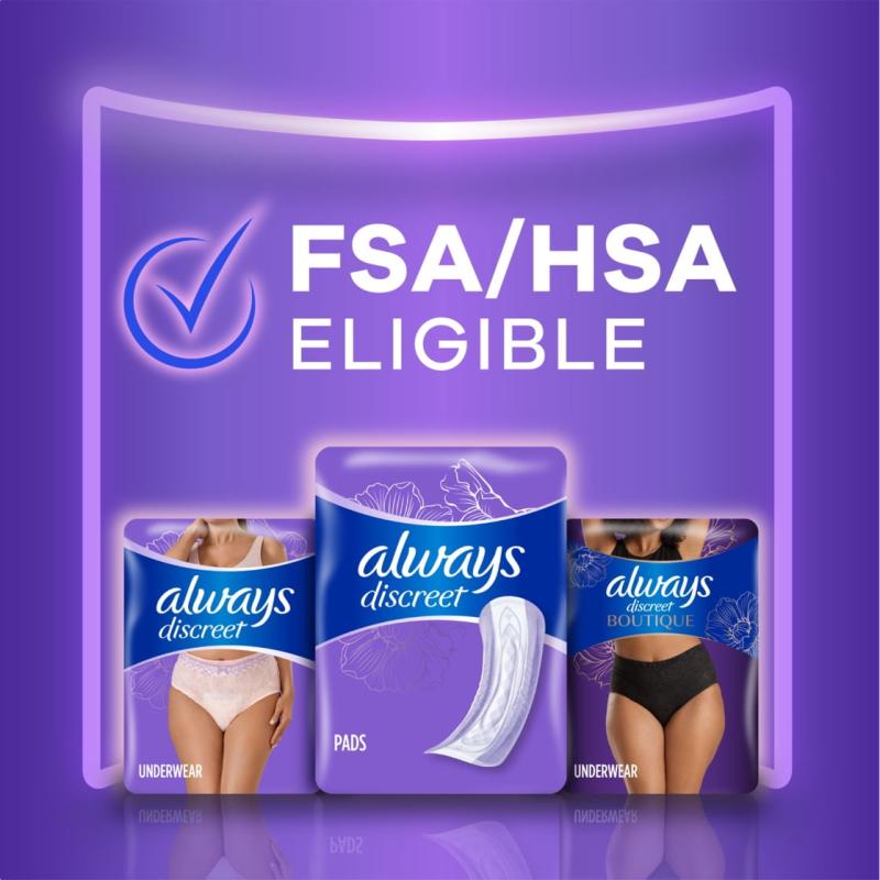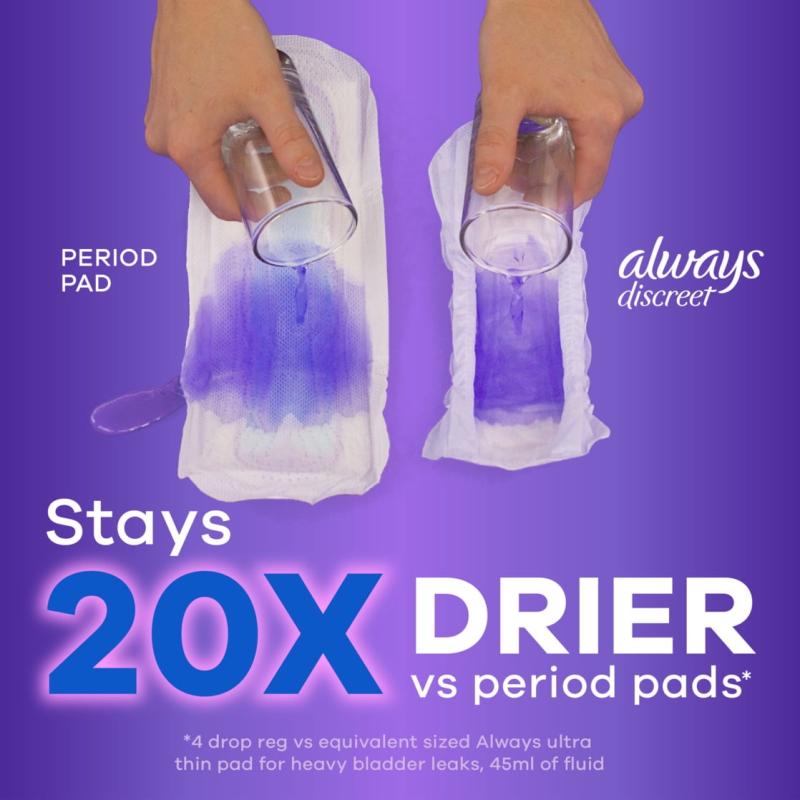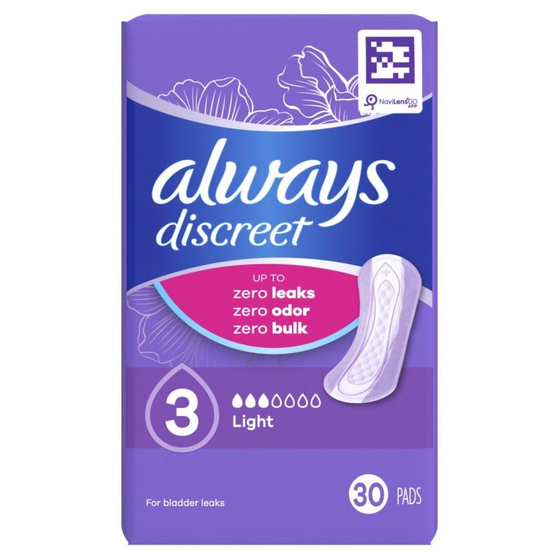 - Always Discreet Adult Incontinence Pads for Women, Light Absorbency, Regular Length, Postpartum Pads, 30 CT