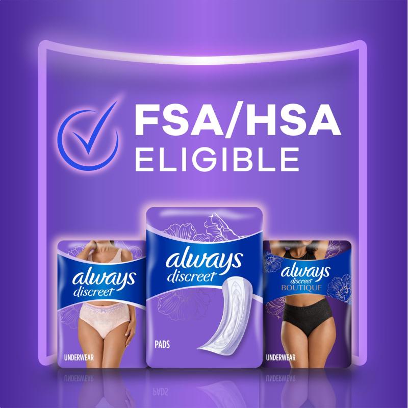 - Always Discreet Adult Incontinence Pads for Women, Light Absorbency, Regular Length, Postpartum Pads, 30 CT