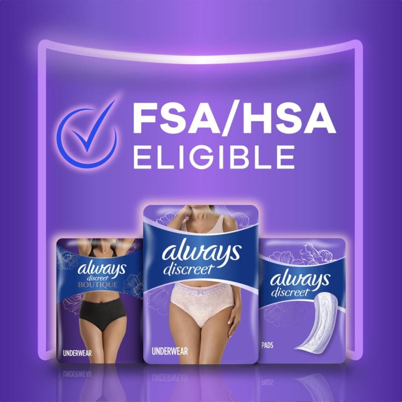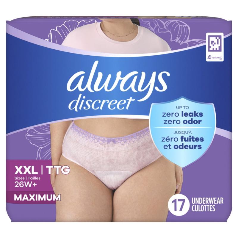 - Always Discreet Adult Incontinence Underwear for Women and Postpartum Underwear, XXL, Up to 100% Bladder Leak Protection, 28 CT
