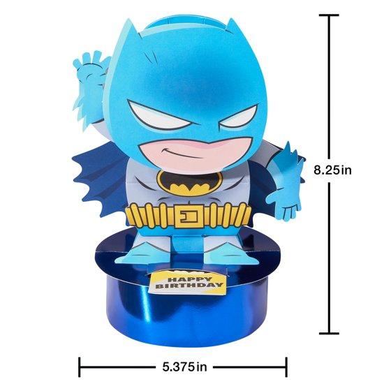 - This Batman-themed birthday pop-up card features a dynamic and colorful design with Batman in action, suitable for fans of all ages