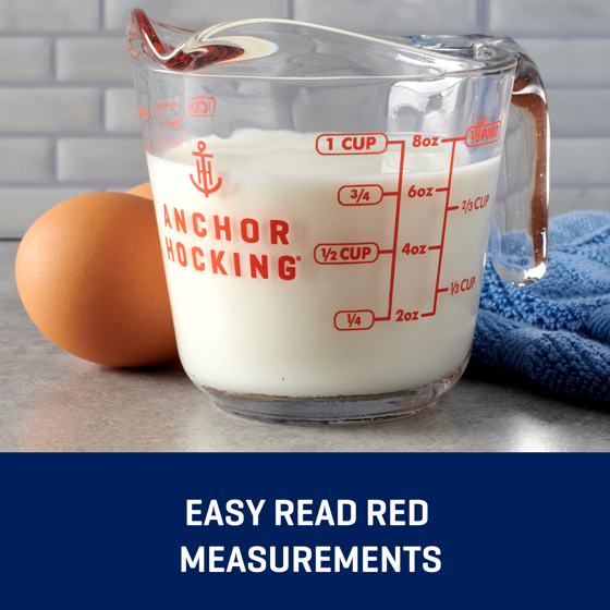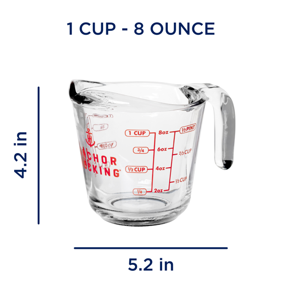 Anchor Hocking 1-Cup Glass Measuring Cup with Easy-Grip Handle and Spout