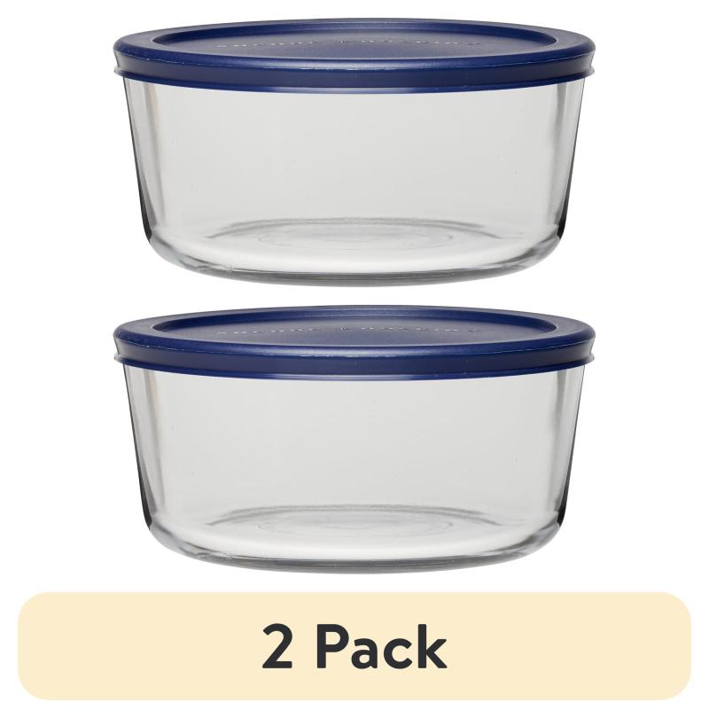 (2 pack) Anchor Hocking Glass Food Storage Container with Lid, 7 Cup Round