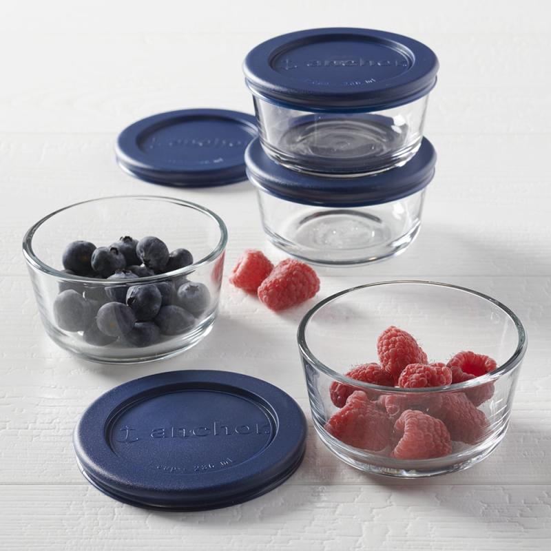Anchor Hocking Glass Food Storage Containers with Lids, 1 Cup Round, Set of 4