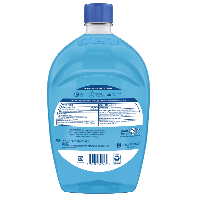 - Aureus & E. coli) Due to its unique formula, the liquid hand soap pump should only be refilled with Softsoap Antibacterial Liquid Hand Soap It is best to wash hands with soap and clean running water for 20 seconds