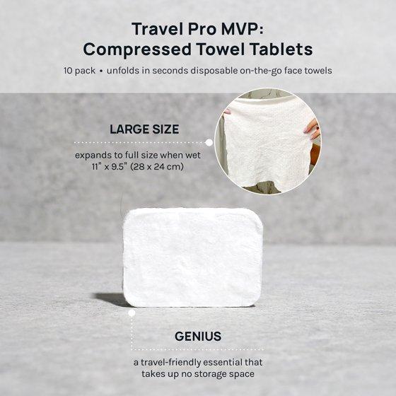 How to use: Add a few drops of water to the tablet, watch it expand, and unfold into a durable 8.5" x 9.5" towel ready for use.