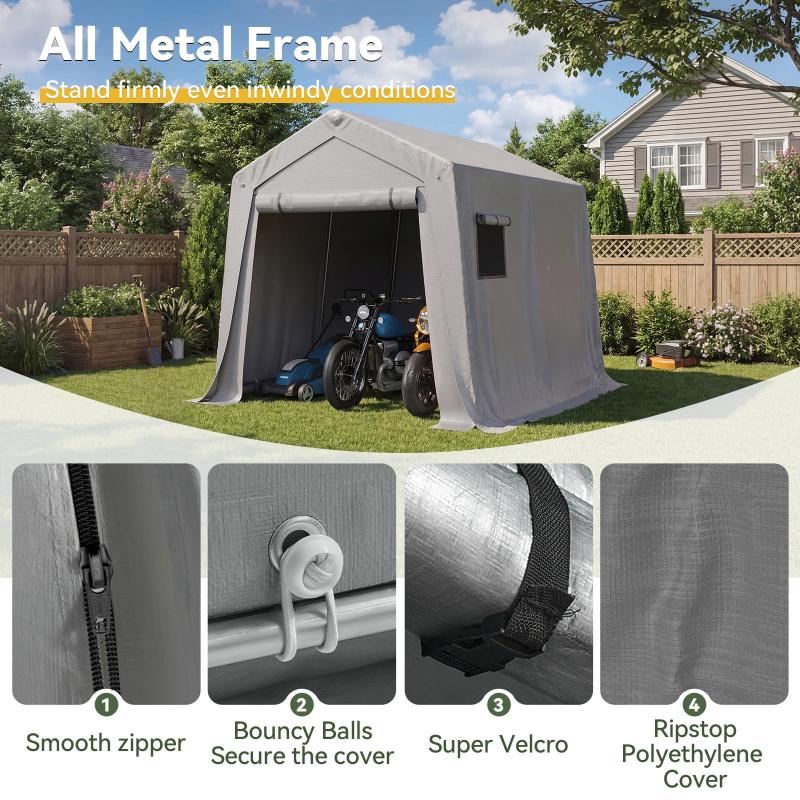 - Robust Protection: The portable storage shed features heavy-duty 300D waterproof fabric and a galvanized steel frame, offering year-round protection against UV rays, rain, snow, and wind for vehicles and outdoor equipment.