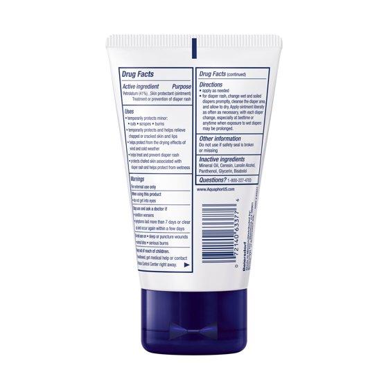 Aquaphor Baby Healing Ointment is suitable for baby's sensitive skin. This is the number 1 pediatrician recommended multi-purpose solution for your baby's many skincare needs. Ideal for relieving diaper rash, this healing baby ointment is also great for soothing dry, chapped or cracked skin and helps prevent chafing. It nourishes and protects baby's skin to enhance healing from skin irritations such as chapped skin from teething and drool rash. Uniquely formulated with 41% Petrolatum to allow oxygen to flow. Moms can also use the ointment to soften dry hands and cuticles, cracked heels or chapped lips. To use: Apply Ointment with every diaper change to protect the skin from wetness, acidity and chafing. Also use for diaper rash, drool rash, minor scrapes and scratches, as well as dry chafed skin. If the diaper area does get irritated, use soothing Aquaphor Baby Diaper Rash Cream for mild to moderate diaper rash and fast relief Aquaphor Baby Diaper Rash Paste for more troublesome rashes. Aquaphor Baby Ointment is a white translucent to light yellow ointment. Color variations occur due to the nature of the ingredients in the product, but do not affect product safety and performance.
