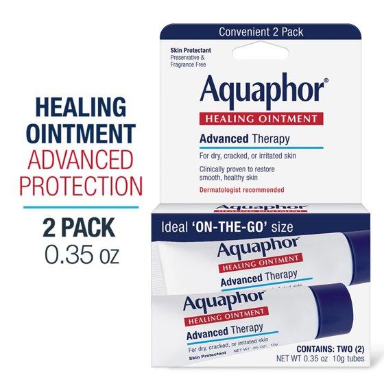 - Two 0.35 ounce tubes of Aquaphor Healing Ointment Advanced Therapy Skin Protectant