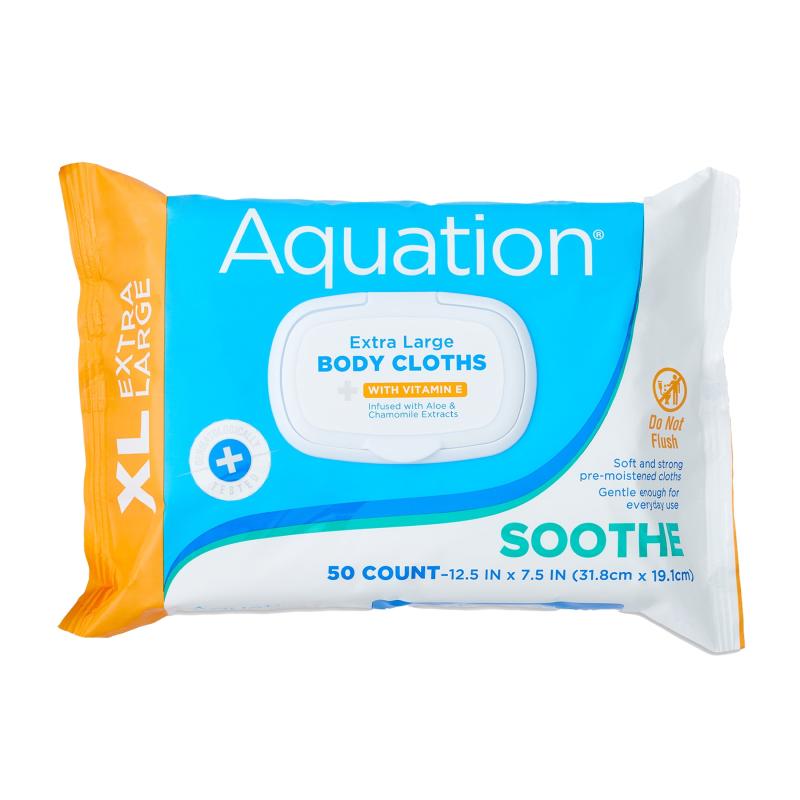 Aquation Extra Large XL Cleansing & Soothing Body Cloths Wipes with Vitamin E, 50 Count, 2 Pack