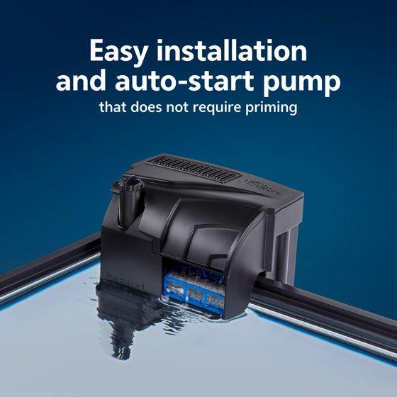 - INNOVATIVE FILTRATION: Includes a Bio-Holster cartridge holder for beneficial bacteria to grow and an Aqueon EcoRenew cartridge made from fibers infused with carbon. Auto-start pump requires no priming, automatically restarts if power is interrupted and restored.