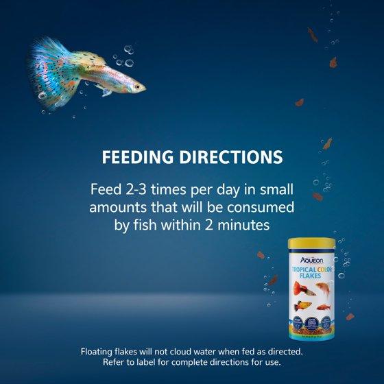 Enhance the natural brilliance of your tropical fish with Aqueon Tropical Color Flakes—a premium fish food formulated to bring out the best in your aquarium’s colorful inhabitants. Made with quality ingredients like spirulina, marigold powder, and chili powder, our fish flakes intensify reds, oranges, and yellows in popular species like cherry barbs, swordtails, red or orange mollies, guppies, red pencil fish, neon tetras and more. This balanced formula supports immune health and healthy growth, helping your tropical fish remain vibrant and active. Specifically designed for surface feeders, our fish flakes are highly digestible, helping to reduce uneaten food waste and maintain cleaner, clearer water.