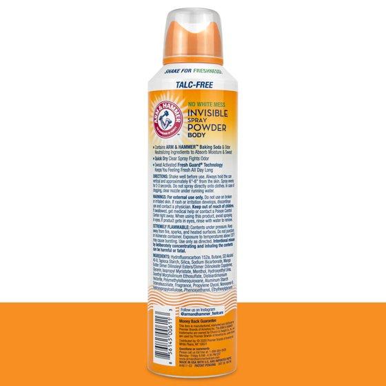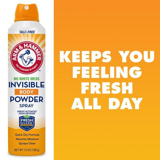 - Arm & Hammer body invisible spray powder has sweat activated Fresh Guard technology keeps your body feeling fresh all day long
