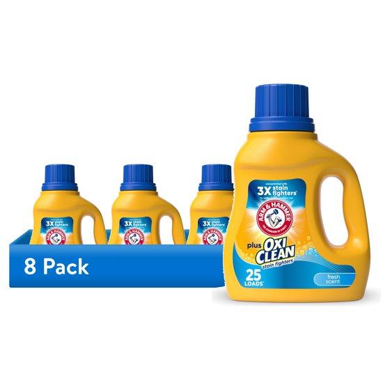 (8 pack) ARM & HAMMER Plus OxiClean Stain Fighter Liquid Laundry Detergent, Fresh Scent, 32.5 fl oz, 25 Loads