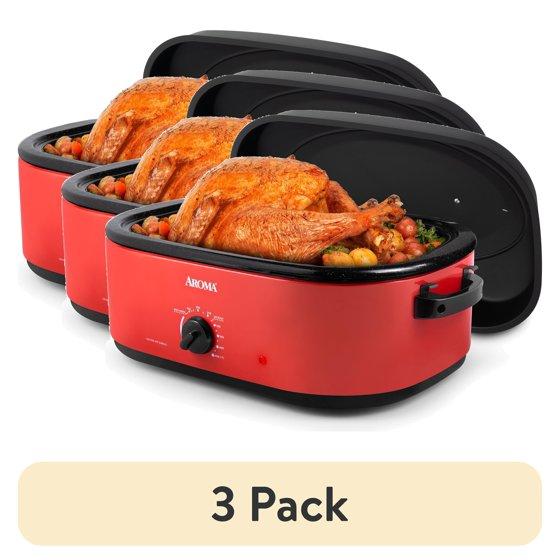 (3 pack) Aroma 18Qt Electric Roaster Oven with High Dome Lid, 8X Bonded Granite Enamel, Red (Model ART-718RH)