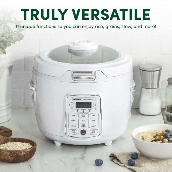 Aroma Professional 20-Cup Digital Rice & Grain Multicooker and Slow Cooker with Glass Top and 2X Bonded Granite Ceramic Non-Stick, White