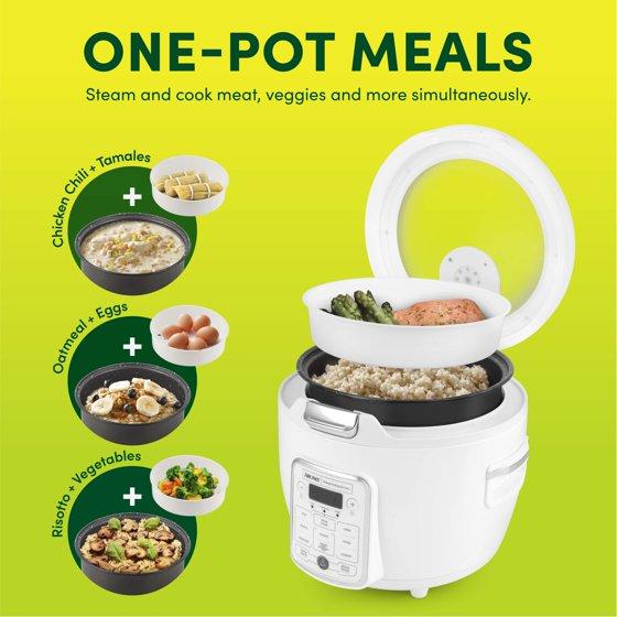 - Easy-to-use, programmable digital controls with automatic Keep Warm mode and Rice, Grains, Oatmeal, Slow Cook, Steam, Sauté-then-Simmer®, Cake, Soup, and Yogurt functions