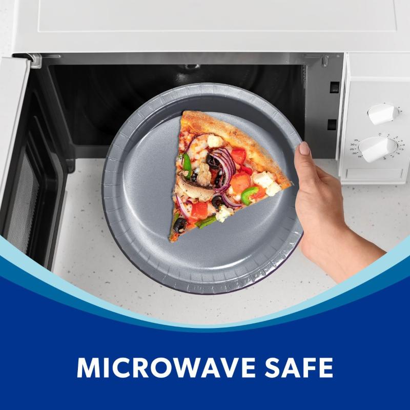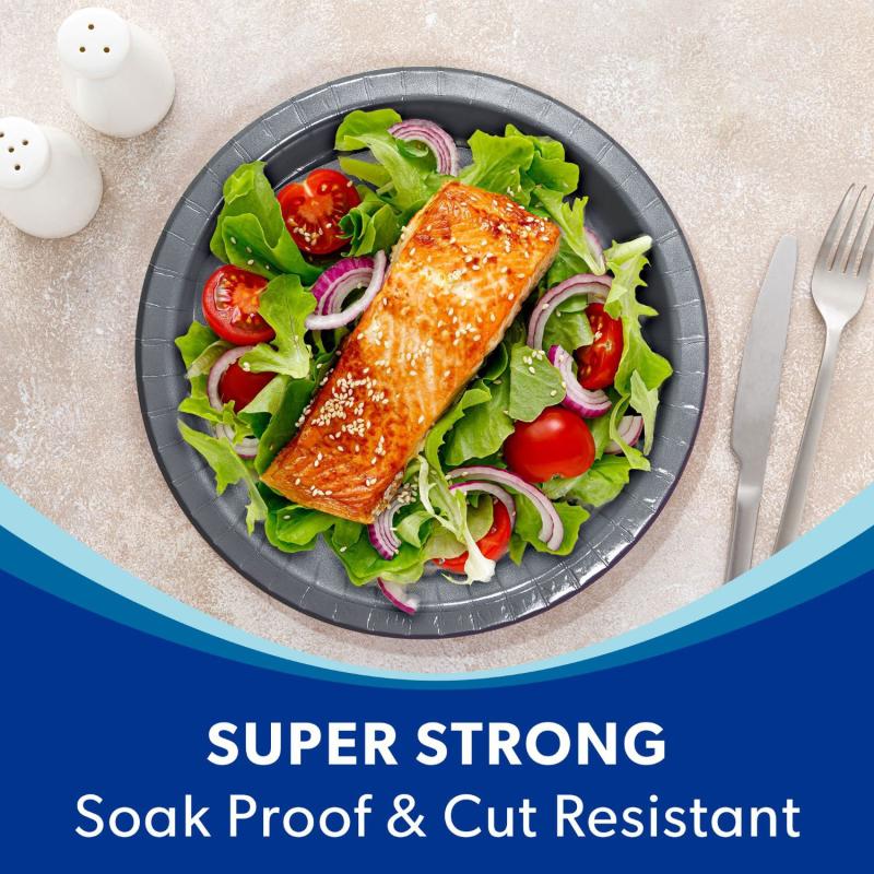 Arstyle Paper Plates are now made stronger and more sustainable with 15% less wood fiber than previous Artstyle paper plates. These plates are cut-resistant and microwave safe premium paperboard, and ready to serve up a steak or leftovers with worry-free ease. The 10" size of Artstyle paper plates is nearly an inch larger than standard paper plates, making them able to handle every serving situation. From a full meal to an elaborate buffet, the sturdy and premium Performa board will ensure that they will not sag or bend with the weight of your guests' selection of food.