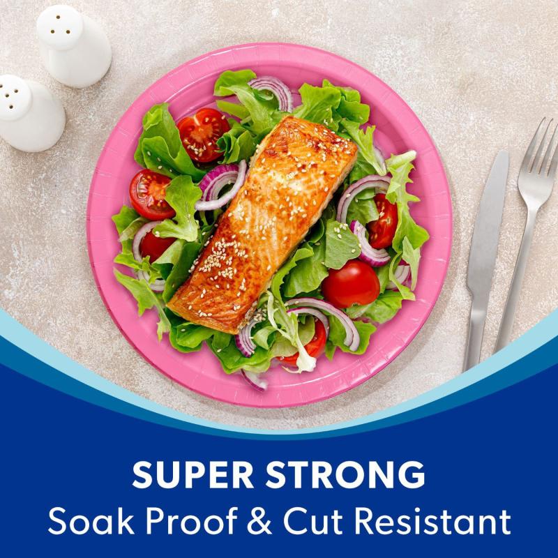 Arstyle Paper Plates are now made stronger and more sustainable with 15% less wood fiber than previous Artstyle paper plates. These plates are cut-resistant and microwave safe premium paperboard, and ready to serve up a steak or leftovers with worry-free ease. The 10" size of Artstyle paper plates is nearly an inch larger than standard paper plates, making them able to handle every serving situation. From a full meal to an elaborate buffet, the sturdy and premium Performa board will ensure that they will not sag or bend with the weight of your guests' selection of food.